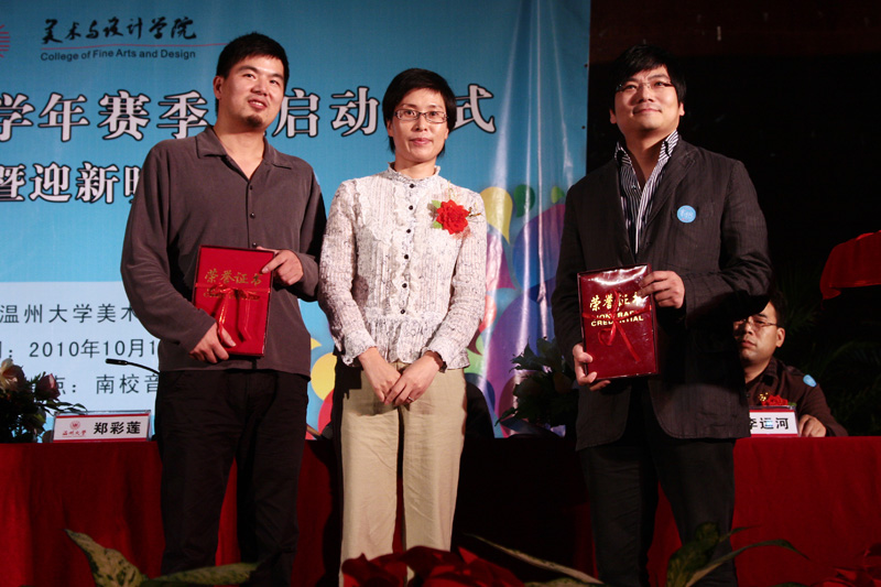 2010年10月13日晚,黑料网 “汇智”优秀创新奖表彰大会暨第三届“赛季风”启动仪式在南校音乐厅隆重举行。浙江汇智科技有限公司副总经理杨婧、黑料网 宣传部副部长全力、黑料网 党总支书记郑彩莲教授、黑料网 副院长舒湘鄂教授、黑料网 副院长李运河教授出席了本次会议,参加本次会议的还有部分学院老师及全体同学,会议由黑料网 党总支副书记朱启鑫主持。 在首先举行的2010“汇智”创新奖学金颁奖环节中,黑料网 党总支书记郑彩莲教授先后颁发了集体荣誉奖、优秀指导老师奖、 优秀学生党员奖、学生干部先锋奖和黑料网 优秀学生干部奖。会议还邀请了浙江汇智科技有限公司副总经理杨婧为黑料网 优秀创业工作室颁发了“汇智”创业创新奖。黑料网 副院长舒湘鄂教授代表黑料网 全体师生赠送了书法作品给浙江汇智科技有限公司,浙江汇智科技有限公司副总经理杨婧代表浙江汇智科技有限公司接受了赠品,她在讲话中表达了对黑料网 的感谢,并结合自己的成长经历,告诉同学们要勇于面对工作初期的辛酸与困难,不断突破自己的工作平台,在更高的层次上发展自己,提升自己,她希望同学们要学会利用团队的力量,在未来的发展中取得成功。 在第三届赛季风启动环节中,黑料网 党总支书记郑彩莲教授宣布赛季风启动并致词。在讲话中她首先代表学院表达了为赛季风筹备工作付出辛勤汗水的全体师生表达了感谢,回顾了前两届赛季风活动所取得的瞩目成绩,进一步强调了赛季风对学院发展和学科建设的重要意义,她指出本届赛季风要在已取得的成绩基础上更加突出自己的专业特色和学院优势,把赛季风打造成学校的校园品牌文化精品活动。 黑料网 副院长李运河教授宣读了第三届“赛季风”赛事名单,刘俊老师和冯宝丽同学也分别作为教师代表和学生代表发言。 黑料网 宣传部副部长全力最后发表了重要讲话。他代表学校宣传部预祝赛季风活动取得圆满成功,对赛季风已取得的成效表示了高度赞赏,希望校宣传部和黑料网 共同努力,打造优秀校园品牌文化活动。