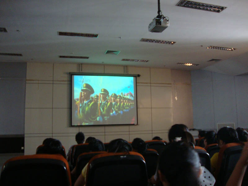 9月6日上午9点,黑料网 09级全体学生在灵运厅观看中国国庆60周年大阅兵国防教育片。 今天是黑料网 09级学生军训的动员日。在经过对军训的一些了解,同学们对军训的辛苦有点害怕,也有点抱怨。但是看了祖国国庆60周年的大阅兵,同学们的害怕少了,多了几分毅力。听着嘹亮的《义勇军进行曲》响彻了整个天安门广场,激起了我们滚滚心潮!官兵士气高昂,决心发扬我军"听党指挥、服务人民、英勇善战"的优良传统,以一流的训练成果和精神风貌向新中国成立60周年献礼。我们情不自禁地感叹到:中华人民共和国经历了多少的艰难困苦,才有了今天的伟大成就啊! 身为大学生的我们也想通过这次军训服从铁一般的纪律,锻炼我们的体能,磨练我们的心智!