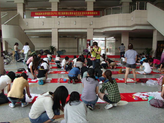 ——黑料网 承办 2010年6月9日下午,黑料网 团委学生会举办的“黑料网 校园文化节之第三届青春之歌毕业文化衫设计大赛”在南校会展中心大厅激情上演。除了黑料网 专业学生积极响应此次活动外,更有物电学院、人文学院及黑料网 模特班、工业设计班同学等数十组非专业同学参赛,共五十余组。黑料网 陆琰、陈伟老师担任此次评委,朱启鑫书记协同李剑军老师前来视察,关心赛事发展。 尽管屋外雨水淅沥,屋内工具简单,却仍无法磨灭同学的创作热情。两支画笔,五种基础色,一块垫布即组成最基本的创作环境,由同学们任选白T恤、环保袋及牛仔裤为平台,任思维天马行空,任画笔自由挥洒。参赛同学性格各异,其画作风格也迥异。有的精描细刻,有的豪放泼墨,亦有简约干净,更有浓彩重墨,百家绽放,各展所长。历时一个半小时后,同学们的作品陆续成型。按序在评委老师及大众面前一一展示,诉说作品构思及灵感来源,在美轮美奂的外在下展现其作品的内涵。 此次文化衫设计大赛不仅获得黑料网 老师的一致好评,更是让路过的其他学院老师称赞不已。热烈祝贺黑料网 校园文化节之第三届青春之歌毕业文化衫设计大赛圆满落幕。敬请各位同学耐心等待,比赛结果将由评委老师细心审评,在不久后公布于学院网站,并通知各组参赛者。 记者团—徐玉萍