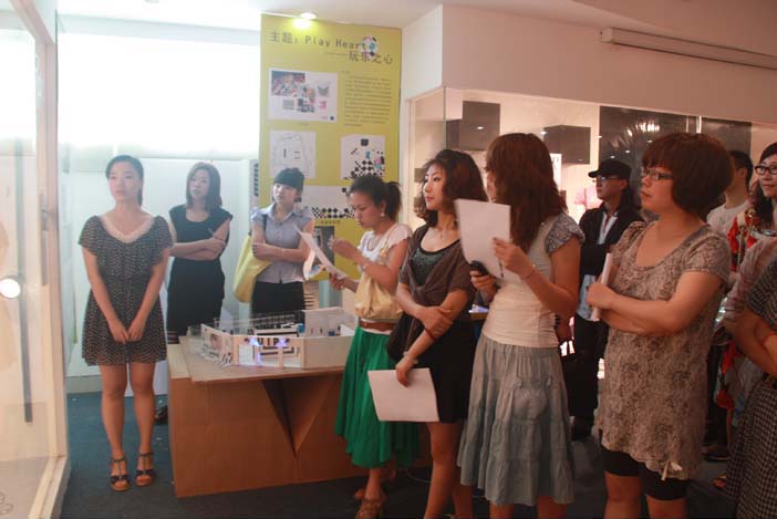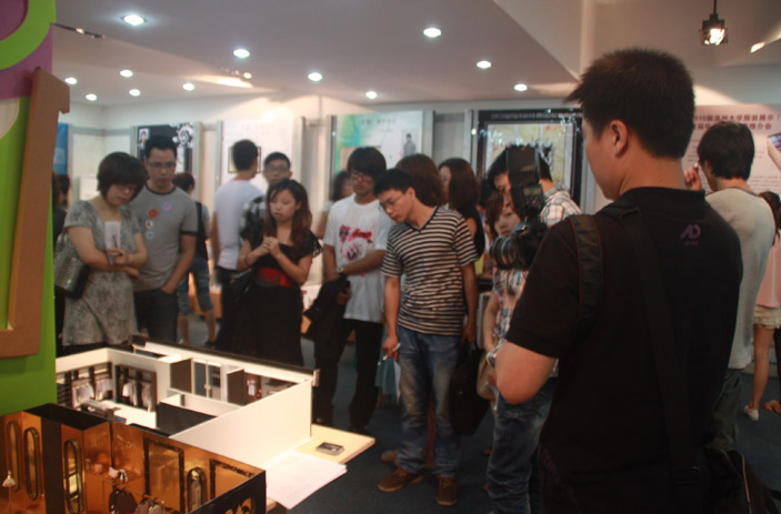 境韵新生、视觉顽童、嬉皮年代、五度卡农……19种不同的设计主题,借助陈列道具及音响、灯关效果,凸显产品的视觉风貌,唤起顾客的购买欲望。6月10日上午9:30,黑料网 展示艺术设计(方向)的19位学生举行2010届服装展示(陈列)首届毕业成果展兼推介会在黑料网 2A二楼展厅隆重举行,吸引市服装商会协会,温州奥奔妮、庄吉、雪歌、飘蕾、优衣派、索玛、报喜鸟集团女装、透秀、阔帅、拍普儿、网纱、腾旭、新派、交叉点、欧陆天使、迪丰、麦奴娇等20来家企业过来遴选优秀毕业生。各企业服装设计师、各企业部门负责人、学校毕业生、学院学校领导、媒体等300多人到场观摩。 本次展览由黑料网 和瓯江学院主办,温州服装商会和温州市服装设计师联社协办的2010届黑料网 服装展示(陈列)毕业成果展本次的展览主题为焦点FOUCES,意为终端视觉以焦点制胜,探索今天的市场,创造未来的视野。更有一层意思是大学四年时光,我们每个人都想成为社会的焦点,我们也正在创造更多的视觉焦点,将四年的积累转化成最后的激昂,让大家导演一场属于自己的“FOUCES”盛筵。毕业生在各自导师的悉心指导下,通过四年系统性、开放性与创新性并举的课程训练和培养,针对目前设计艺术领域的热点问题及流行趋势进行研究和探讨,展演作品主题鲜明,视角独特,通过成熟而富有张力的设计语言,表达了莘莘学子的艺术理想和对本专业的不懈探讨与追求。