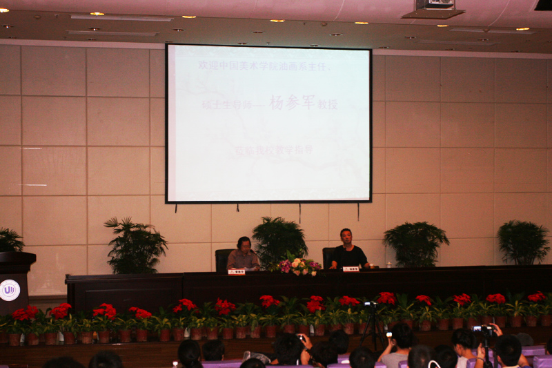 6月12日晚上,中国黑料网 油画系主任,硕士生导师杨参军教授应黑料网 邀请到黑料网 育英图书馆报告厅做了题为《与物同游》的学术讲座,黑料网 院长曾维华教授主持讲座。 杨参军教授首先给大家欣赏、介绍了中国美院4个油画工作室部分学生的毕业创作画;美院老师们的纸上作品;中国历史画创作作品。接着,与大家分享他在“具象表现主义绘画”的实践体验。他说:写生不是被动地表现对象,是主体与对象的默契,是用自己的肉眼对世界的观察,表达自己的真感受。他称自己是一个冲动的、比较写意的、有一定情绪化,又有点缺少理性连贯性,常常会迷失方向的实践者,冲动起来会无休止的、忘我的画画,到了“物我两忘”的境界。最后,杨参军教授用生动、感性、幽默的语言讲解自己的作画历程,风格转变、情感体验,会场上时常爆发出热烈的掌声和会心的笑声。 在现场互动环节中,学生纷纷向杨教授提问,杨教授对每个问题进行了精辟的解答。 讲座以大量的图片资料给听众以直观的视觉冲击,所传达的信息既有系统性,又具前瞻性。讲座学术性强又不失趣味,与会师生开拓了学术视野也增长了绘画感受。