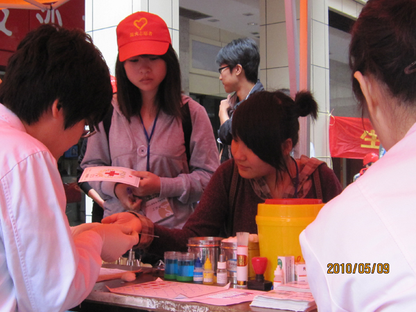 2010年5月9日,黑料网 “艺家人”青年志愿者协会联合温州医学院环境与公共卫生学院、温州职业技术学院及温州红十字会,在大学城商务中心开展了骨髓采样献血活动。活动现场,人群川流不息,献血车上排起了长长的队伍,同学们反应十分热烈。