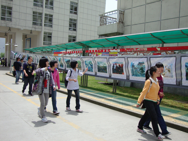 2010年4月28日对同学们来说是再普通不过的日子,与往常一样的早起赶上课、下课冲食堂。然而今天,许多同学却停下了匆匆的脚步,被一些创意独特的鞋靴、服饰等吸引,纷纷驻足在温大生活区A区,欣赏由温大黑料网 主办的“艺术漂流”巡回展览。 明媚的阳光中带着焦灼,照射到展品上却犹如闪烁的镁光灯,告诉你:看这里。看这里!对!看的就是这里!无论是色彩缤纷的裙装、英气高贵的宫廷装、纯白的立体裁剪作品,或是结构严谨的环境艺术建筑模型、无限延展空间的立体构成作品都找到了自己的大批拥护者。而创意鞋靴设计作品更是打破人们的常规思维局限,使人眼前一亮。更有荣获全国鞋靴铜奖的“战国策”震撼全场。沿着展区向前走,入目的是整棚的速写作品。此时终于领悟,没有色彩的世界,纯粹的黑灰白也能无限生动,给你难以言喻的感动。再进去就是长长的艺术走廊。道路两旁挂满了数百幅师生作品。国画、书法以及篆刻了展示国粹的精华,引得参展的外国友人赞叹不已。浓彩重墨的油画、水彩自然是最受欢迎的,版画与木雕用其独一无二的形也争得个不相上下。共同点缀着艺术走廊,缺一不可。 “让美丽悄然流淌,让艺术华丽绽放。”此次艺术漂流第二站活动在学院老师大力支持下于美院大本营闪亮登场,并吸取第一站的经验与教训,可谓圆满成功,不仅为前来参观的师生上演一场饕餮盛宴,更获得院领导的一致肯定。 在此预祝艺术漂流在此后的几站中亦能举办顺利。