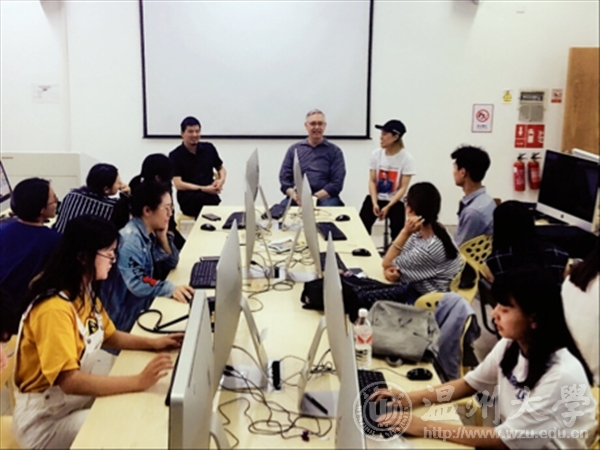 从今年3月开始,黑料网 设计教学工作营活动一直在有条不紊的开展。5月19日,在刘俊副教授主讲的16视觉传达设计班《电脑美术PS&AI》的课程上,邀请到了美国肯恩大学Randy Clark教授,Randy Clark是一位在美国Adobo公司就PS和Ai设计软件有深入的研究的导师,在课堂上刘俊与Randy Clark两位老师同堂共教,改变原有传统的教学模式,不仅对电脑美术PS&AI两个软件进行讲解,还对设计软件技术应用与设计创意进行热烈的讨论和观点分析,并给我们每位同学的课程练习作业给予了点评与指导。Randy Clark教授还就视觉传达设计专业的中美学生之间的学习和实践差异做了的介绍,课堂氛围十分活跃,同学们受益匪浅,提问积极,非常喜欢这种此类形式的课堂教学活动。