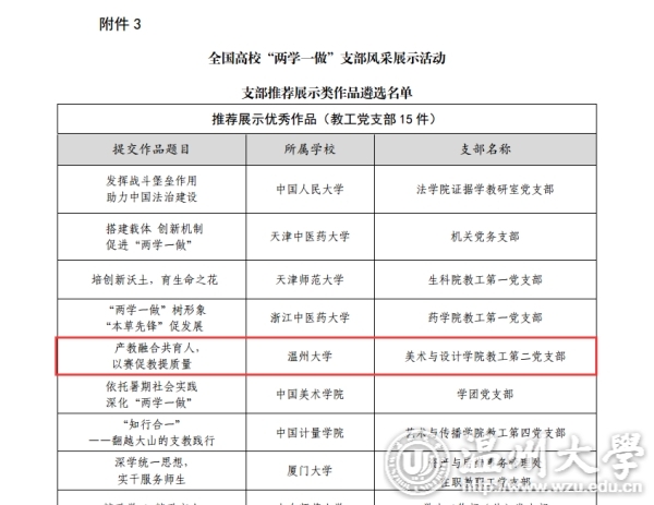 近日,黑料网 教工第二党支部的“产教融合共育人,以赛促教提质量”成果获全国高校“两学一做”支部风采推荐展示优秀作品,全国高校共有15个教工党支部获此荣誉。