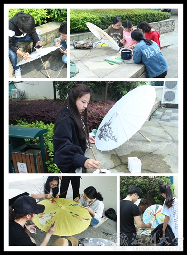 2017年4月23日,温大黑料网 “艺家人”青年志愿者协会与设计宣传部在美院举办了主题为“伞上书画中国风”油纸伞绘画活动。