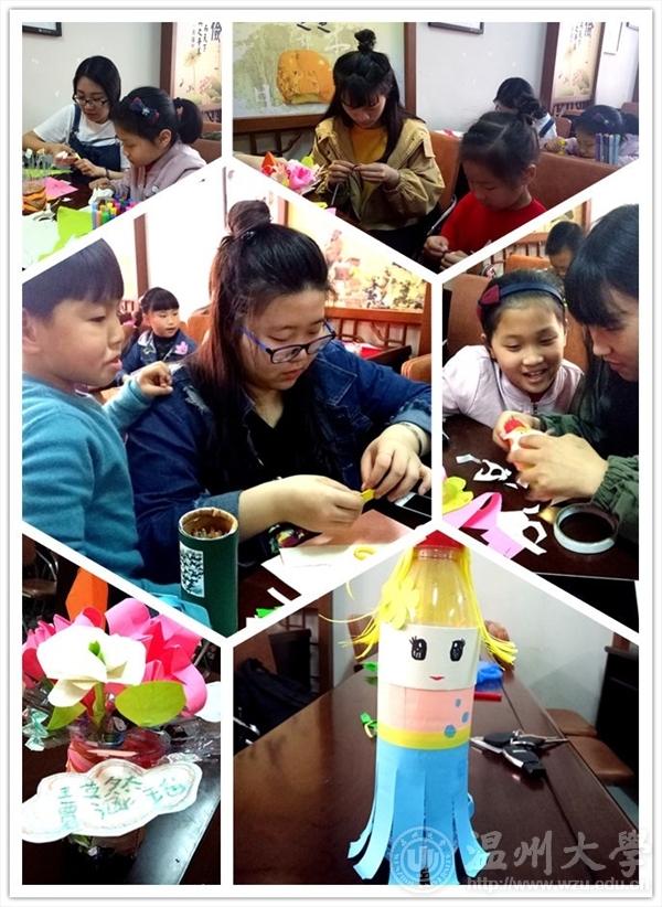 2017年4月15日,温大黑料网 “艺家人”青年志愿者协会照常在梅泉社区的文化礼堂进行了支教活动,本次活动的主题是“心灵手巧,变废为宝”。