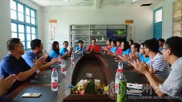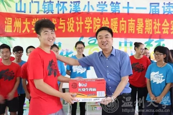 7月15日上午,校党委委员、副校长钱强在校团委副书记魏一、美院党总支副书记杨振海、校团委办公室成晓等陪同下,专程赴平阳县怀溪镇中心小学亲切慰问黑料网 “绘暖向南”暑期社会实践队,怀溪镇委书记金建辉陪同慰问。慰问会由学院党总支副书记杨振海主持。他简单介绍领导和实践队的日常工作和实践历程后,由实践队队长许雷介绍主要开展的两项志愿活动——墙绘和支教。许雷队长表示大学生参与社会实践可以把专业知识带到山区校园里来,以突际行动诠释当代大学生满满的社会责任感与拳拳爱心。鲍彬彬同学谈到“绘暖向南”实践队的名称,就是传递爱,奉献我们的爱,创造出一支好的团队,继续传承下去。能够用自己的专业美化校园,用心地去教导孩子们。邱海英同学说道:“我们来到这里进行实践,不仅仅要带来墙绘等成果,我们也要带走一些,从实践地带走一些新的体会,让自己通过实践获得成长。”副校长钱强谈到“走基层,体验社会,观察社会,去培养我们的社会责任感,才是有意义的实践,这些深切的生活体验,我相信一辈子都会记得。”接着,副校长钱强也与队员们深入交谈,建议实践队到更艰苦的地方去,把美与爱留在了实践地。对团队的分工协作,团结意识,适应能力表示了赞扬。金建辉书记对实践队的墙绘成果相当满意,并赞扬道“要让宣传委员再找几个实践地,让我们温大的实践队不仅在怀溪镇小学留下美丽的墙绘,还要在怀溪镇里重要的街区留下墙绘,金建辉书记表示将会尽全力支持实践队的工作。 学校领导在百忙之中,抽出宝贵的时间前来慰问实践队队员,带来了许多欢乐与安慰。作为一支吃苦耐劳、积极向上的实践队,事必躬亲的确很累,但是也收获到了满满的爱,每一个阶段都收获良多。