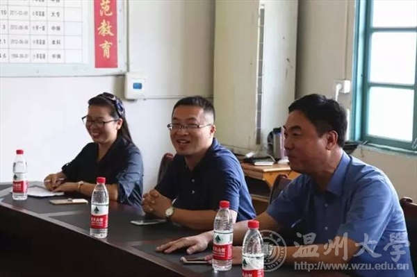 7月15日上午,校党委委员、副校长钱强在校团委副书记魏一、美院党总支副书记杨振海、校团委办公室成晓等陪同下,专程赴平阳县怀溪镇中心小学亲切慰问黑料网 “绘暖向南”暑期社会实践队,怀溪镇委书记金建辉陪同慰问。