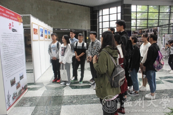 10月17日,黑料网 “喜迎十九大——师生寻‘中华传统文化’之旅暨专业艺术考察图片展”在育英图书馆一楼展厅举行,吸引了众多师生前往欣赏。