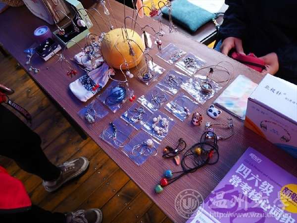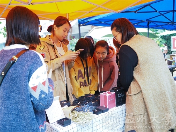 早上九点,小雨淅沥,同学们按时集合,在部长们的安排下,大家迅速布置好场地,等待卖家们的到来。到了十点钟,卖家们纷纷而至,他们以寝室为单位,拿出自己不用却价值依存的物品进行买卖,如英语四级复习资料、图书、原创手工饰品、拼豆、耳饰、帽子围巾……十多种不同类型的摊位,这20多个小摊位摆满了整个小广场,引来了许多同学的围观。