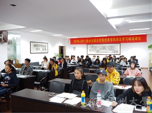 2017年11月3日晚,黑料网 2016-2017学年优良学风班及学习标兵的评比在2B4001顺利举行。本次评比由学生科李雪涛老师、团委学生会主席陈显楠同学、团委学生会副主席王佩瑜同学、团委学生会副主席王芳园同学以及美院各班班长担任评委。
