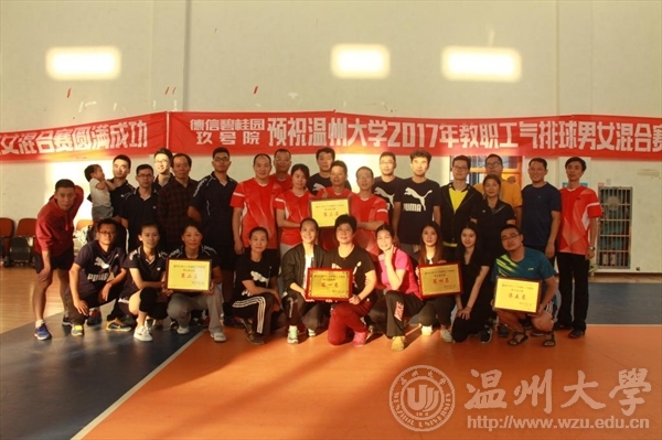 上周,我校工会举办了2017年“碧桂园杯”教工气排球男女混合赛。本次比赛共有17个分工会约170位教职工参赛。第一阶段的比赛于10月25在北校室外排球场举行,黑料网 以小组第二的成绩晋级复赛。第二阶段于28日在北校区体育学院室内球馆举行,经过奋勇拼搏,最终取得了第五名的历史最好成绩。体育学院代表队获得第一名,瓯江学院代表队、后勤代表队、成教学院代表队、黑料网 代表队、数学学院代表队分别获得前六名。