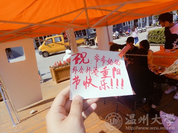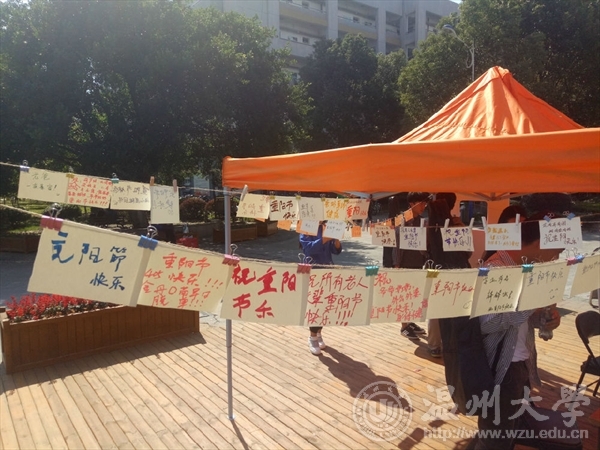 2017年10月28日,黑料网 团委、学生会在超豪学区开展了一场别开生面的重阳节寄语送祝福活动。同学们纷纷写下对长辈们的祝福,并将自己的祝福卡片挂在了细绳上,同时在自己的朋友圈分享了重阳节之乐,让更多人的人感受到了浓郁的节日氛围。
