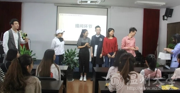 10月18日上午,2018风笛服饰全国校园招聘会温大站在黑料网 2B4001举行。风笛公司总经办主任杜强、招聘人事主管林赛赛、黑料网 总支副书记杨振海、学生科副科长叶筱卉和2018届毕业生参加本次会议。本次宣讲会,拉开了2018风笛服饰全国校园招聘会的序幕。从2009年第一次温大宣讲会以来,至此已经9个年头,多少莘莘学子迈出校门,走进风笛,谱写人生崭新的篇章。