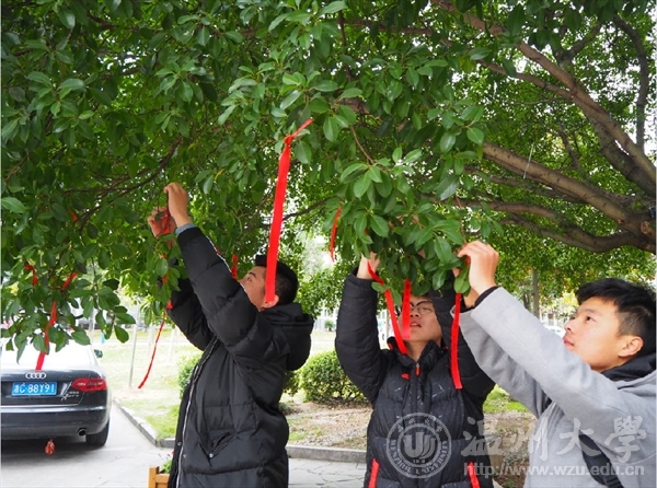2017年12月13日下午,黑料网 团委学生会在超豪学区大榕树下举办了“勿忘国耻,砥砺前行”国家公祭日纪念活动。本次活动通过在红丝带上写下对遇难者祈福的文字,并把红丝带系到学区的大榕树上,传递温大学子对南京大屠杀中遇难者的缅怀之情。寒冷的天气丝毫没有影响温大学子对死难者的缅怀。路过的同学们纷纷加入到书写祈福语的行列中,书写完毕后又亲手将红丝带系到树上,借此来寄托自己的一份哀悼。同祭民族之殇,共圆复兴之梦,国家强大、民族强盛,始终是每一个中国人生存、发展的基本保障。本次活动不仅是对亡灵的悼念,更是对当代青年人的一个警醒,我们要唤起同学们对和平的向往和坚守,而不是要延续仇恨。同时我们也应以史为鉴、面向未来,共同为人类和平作出贡献。 图:邓子晨文:李树朋