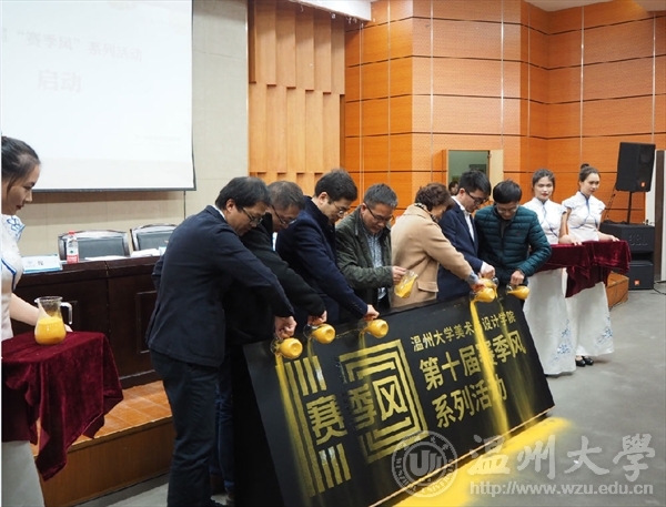 在仪式的最后环节,与会领导们共同洒下金沙,“黑料网 美术与设计学院赛季风系列活动”缓缓浮现,开启了美院第十届“赛季风”系列活动的序幕。