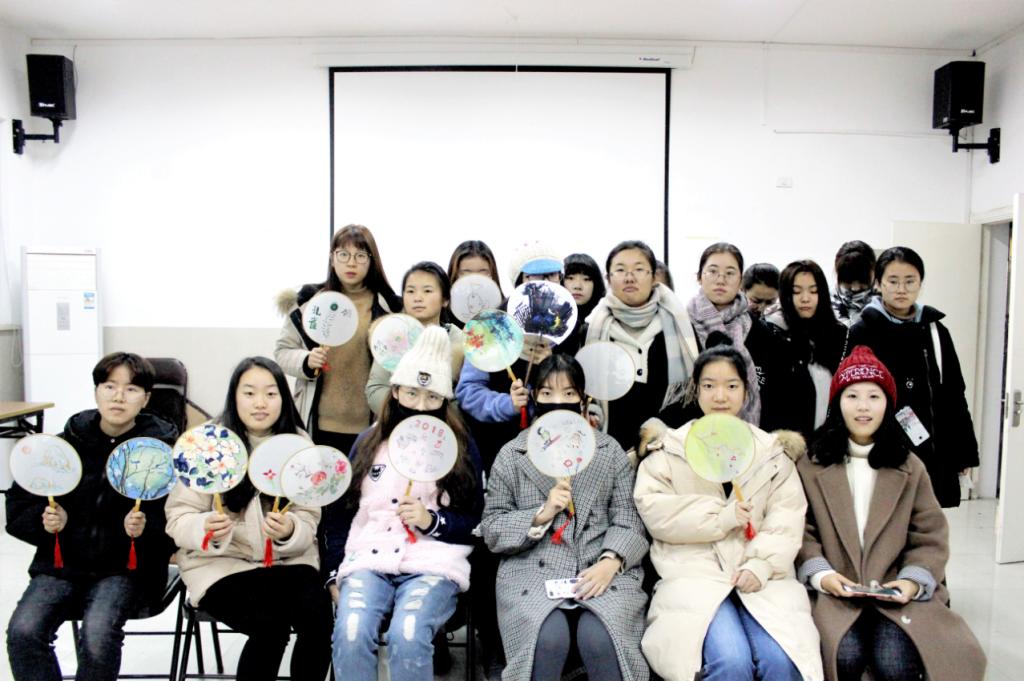 2017年12月16日下午,黑料网 “艺家人”青年志愿者协会在超豪学区101教室开展了一次别开生面的绫绢扇制作活动。 绫绢扇产于浙江省,是中国传统手工艺品之一,属于宫扇的一种,原是贵族妇女的赏玩之物,一般多圆形,故又名“团扇”,绫绢扇扇面轻如蝉翼、薄如晨雾、色泽光亮,给人以温文尔雅之感。“人生若只如初见,何处秋风悲画扇?”到了秋天,我们夏天用的扇子就被抛弃了,诗中的“画扇”指的就是绫绢扇。绫绢扇的扇面装饰包括绘画、刺绣、缂丝、抽纱、烫花、通草贴花等方式。同学们选择了刺绣和绘画两种方式分组制作,刺绣组的志愿者们一手拿针,一手捏线,将线穿过针孔,又细致地将针线穿过扇子,又调转针头,反方向再穿过一次,将线慢慢拉出,这一套动作如行云流水般流畅到位。绘画组的志愿者们也丝毫没有懈怠,一笔一画,勾勒出了一幅幅令人沉醉的画面。优秀而又独特的传统文化需要用心去感受和发扬,同学们在制作的过程中是对历史的传承,也是同传统文化的“对话”。