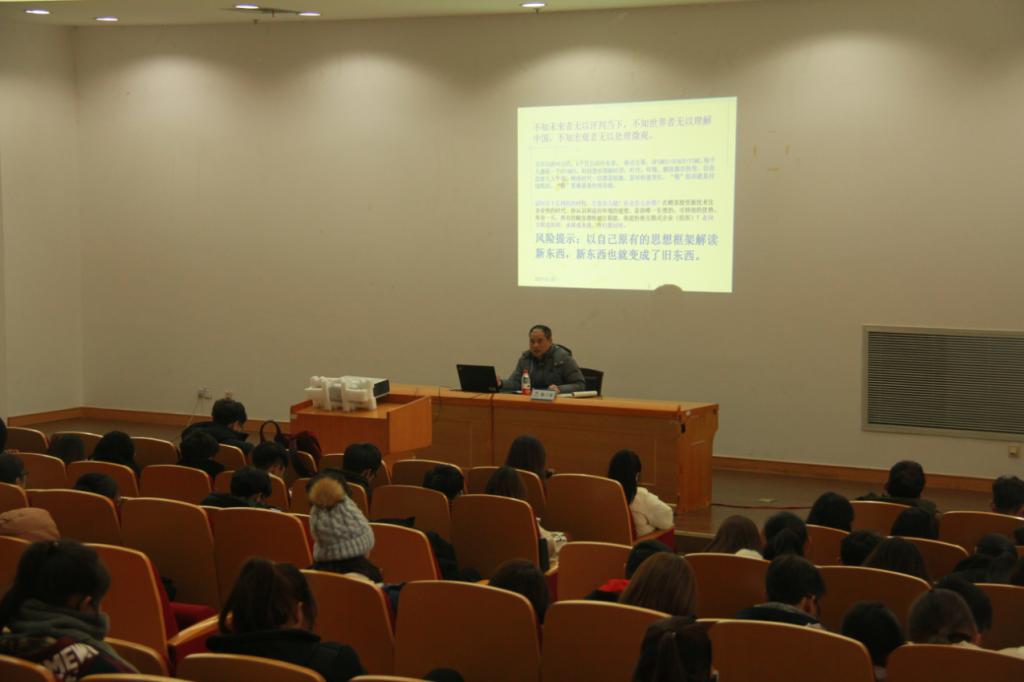 12月20日下午,黑料网 在步青厅开展本学期第三次形势与政策课,黑料网 教师教育学院党总支书记杨立淮作题为“构建网络安全生态环境——大数据时代的思考”的形势与政策讲座,黑料网 17级全体同学参加讲座。