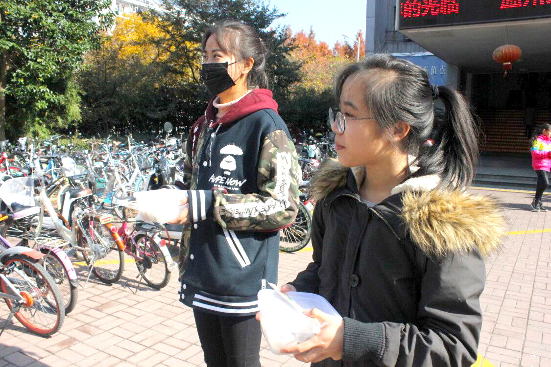 冬至那一天南北方会有不同的习俗,北方大部分地区会吃饺子、南方则会吃汤圆,汤圆代表团团圆圆,那关于冬至吃饺子的说法有很多,得到普遍认同的有两个,其一为纪念“医圣”张仲景“祛寒娇耳汤”之恩,至今南阳仍有“冬至不端饺子碗,冻掉耳朵没人管”的民谣。中午十一点半,志愿者们准时在E区食堂集合,等待着汤圆和水饺出锅,再由志愿者们将汤圆和水饺均匀的分到不同的盒子中,打包好后由两位负责人分别带领志愿者们兵分两路为大学城的保安叔叔以及公交车管理员阿姨们送去了一份不一样的温暖,一份汤圆,一份饺子,看似简简单单的举动却有着满满的感动。在一声声道谢中,志愿者们也体会到了冬季不一样的温暖。