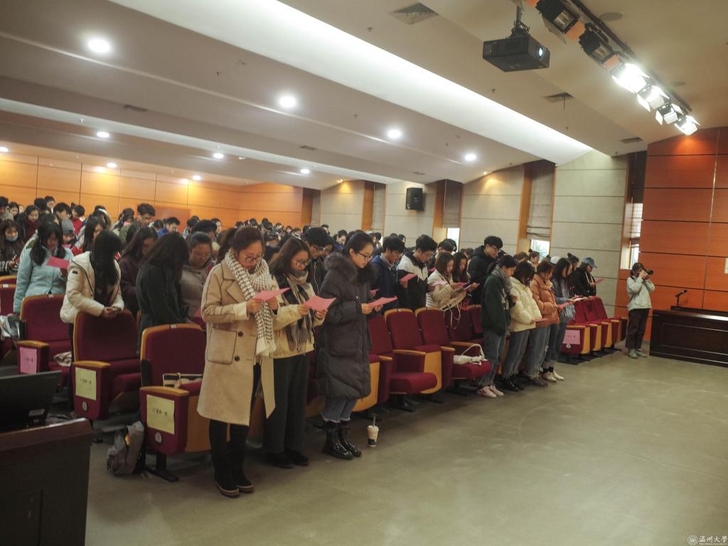 2018年1月10日下午,黑料网 在雁山厅召开2017-2018学年第一学期考风动员大会,黑料网 党总支书记张丽萍、副院长谢子静出席大会,17级全体同学参加会议,大会由学院党总支副书记杨振海主持。 张丽萍书记在动员讲话中重申了考风考纪的重要性和作弊的危害性,她强调学习在于平时的点滴积累,来不得弄虚作假,作弊不能弥补学习上的漏洞,而是一种自欺人人的行为。张丽萍书记还鼓励同学们认真备考,争取考出好成绩。她强调:“大学里的每一次考试都是接受考核认证自我的途径,加强考风建设营造公平的考试氛围,既是每个同学的愿望也是每个同学应该肩负的责任。所以希望同学们在这次考试中能诚信做人,亮出真实的成绩,展现真实的自己。”杨振海副书记根据学生手册相关条例告诫同学们一定不能碰这个底线,在考试过程中不仅仅要交出反映专业知识水平的考卷,更重要的是在考试中要交出诚信的品行之卷。 17级全体同学在学生代表的引领下宣誓,承诺端正考试态度认真复习积极备考。 学生处吕乐老师进行大学生文明修身考风考纪专题讲座。学生处吕乐老师通过精彩的演讲和亲切的互动,加深了同学们对考试作弊的危害的理解,相信同学们也一定会用真实的成绩证明自己的实力,成为一名诚实守信的大学生。 大会还总结了本学期学风考勤和晚自习考勤情况,与会领导对本学期优秀纪检委员进行了表彰。