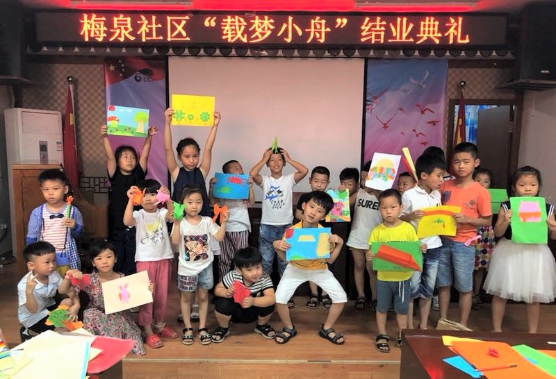 2018年6月23日,温大黑料网 “艺家人”青年志愿者协会的志愿者们如约来到梅泉社区文化礼堂,进行了本学期最后一次梅泉支教活动,主题为手工剪贴画暨结业典礼。