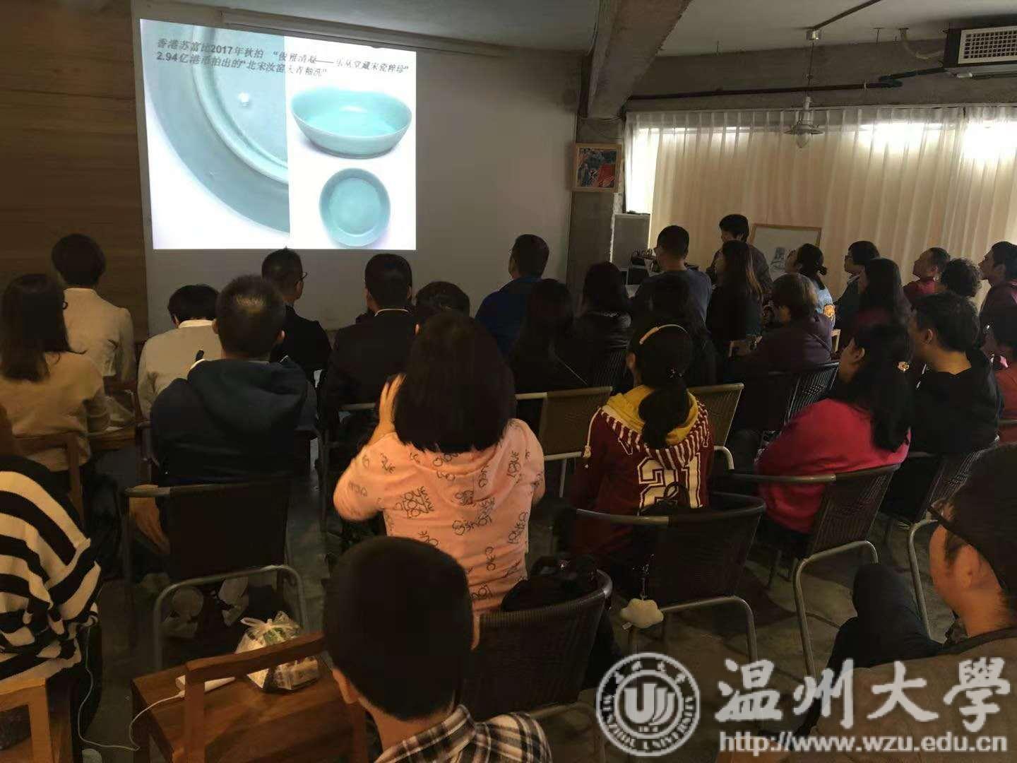 中国之美,美在文化艺术,而青瓷更是其中的代表之一。11月3日下午,由黑料网 和温州市图书馆联合主办的“传统文化与时尚生活”系列活动之十一“青瓷之美知多少——龙泉青瓷审美与赏玩活动”在东瓯智库心工场四楼举办,主讲嘉宾为中国美术家协会会员、中国陶艺家协会会员、中国壁画家协会会员,黑料网 关明新副教授,七十余人参与了本次活动,现场氛围轻松愉快。 龙泉窑开创于三国两晋,至南宋发展到顶峰,受浙江境内越窑、瓯窑、婺窑的影响颇多。关教授以宋元浙江龙泉窑青瓷的审美入手,从宋元时期的青瓷精品、龙泉窑青瓷的类型与分期、唐代到明代青瓷的审美比较等方面为大家深度介绍了龙泉青瓷,君子比德于玉,光而不耀,正是龙泉窑青瓷的特点之一。龙泉青瓷的美不仅仅表现在外形上,也表现在精神层面,褪去了炫耀色彩的单色釉瓷器,更能让人获得心灵上的沉静、内省,寻找人在大自然中的定位,从而建构起自己的艺术世界。 此外,嘉宾还带了一些兼具代表性的龙泉青瓷瓷片实物,让大家现场认识和赏玩,现场气氛更是达到高潮。 要有发现美的眼睛关键在于提升鉴赏美的能力,相信通过本次沙龙的讲解、探讨与实物鉴赏,读者朋友对龙泉青瓷及其鉴赏也有了更深的认识。