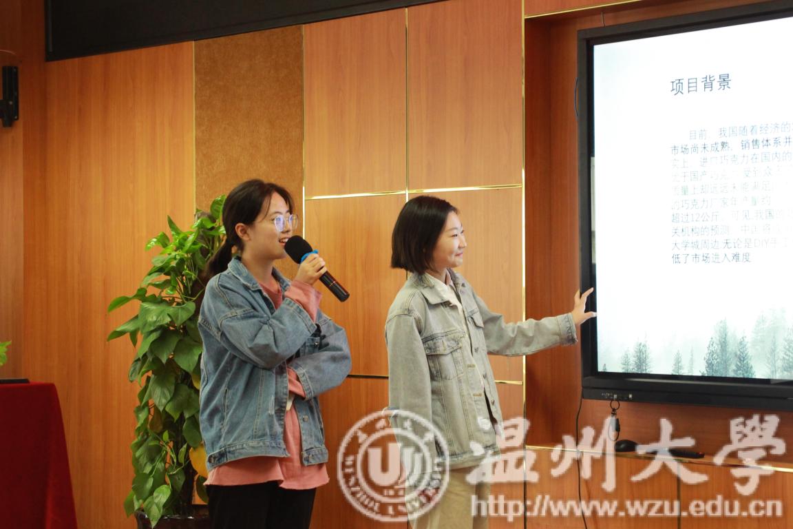 “心灵手巧”巧克力工坊提出了使用天然可可纯手工制作,区别于市场包装的巧克力,追求精巧、细腻的巧克力。经营一家专营甜品店去打造一个悠闲地享受巧克力的甜品店;“来桌游吧!”小组的想法有所不同:去经营一个桌游吧提供种类繁多的桌游,环境优雅清新,服务贴心,使其不少青年的聚会好去处;“最强体魄”小组也有自己的想法,去开发一款基于同城的具有社交属性的移动健身工具类产品“最强体魄健身APP”,为用户提供量身定制的训练计划;最为突出的是“SELF-PLEASURE” 球鞋改色定制工作室 ,想法新颖,现在的年轻人追求个性,喜欢与众不同,随着hip-hop文化和国潮的兴起,人们越来越喜欢用对于外在的追求来展现自己的个性,该工作室球鞋定制,采用C2C的商务模式,与客户充分交流沟通,了解其喜好以及要求,从而定制出客户满意的球鞋。
