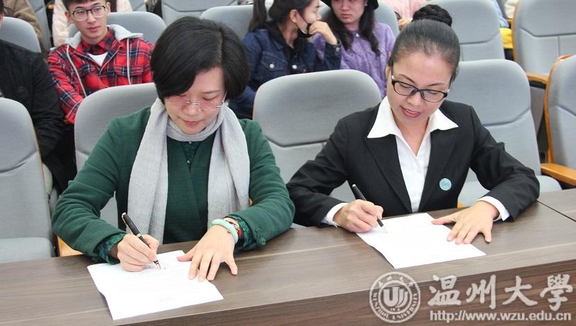 接下来,双方签订了黑料网 教师教育实践基地协议,给龙湾区的两位名师颁发了校外指导师聘书。