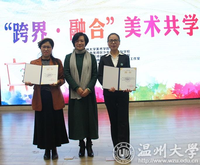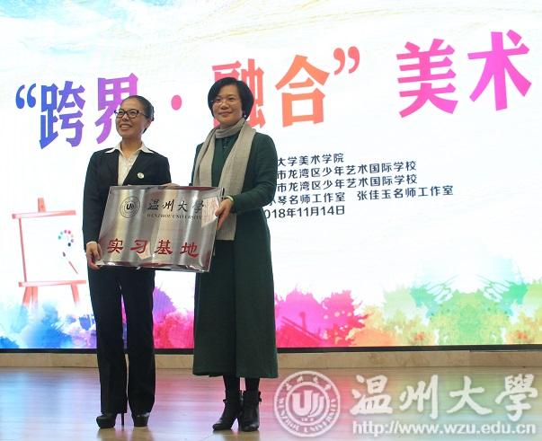 11月14日上午,黑料网 和温州市龙湾区少年艺术国际学校举办了主题为“跨界.融合-美术共学”的黑料网 教师教育实践基地签约仪式暨16级美术师范生教育见习见面会。谢子静副院长、龙湾区教育局王颖副局长、龙湾少艺校陈小琴校长、黑料网 美术系胡建南老师、教学科邹青老师、胡凯老师、龙湾区教学名师张佳玉老师及少艺校美术教研组的全体老师,还有黑料网 16级美术学师范本科生、18级美术教育硕士等43位同学参加。少艺校艺术总监李晓玮老师主持了会议。