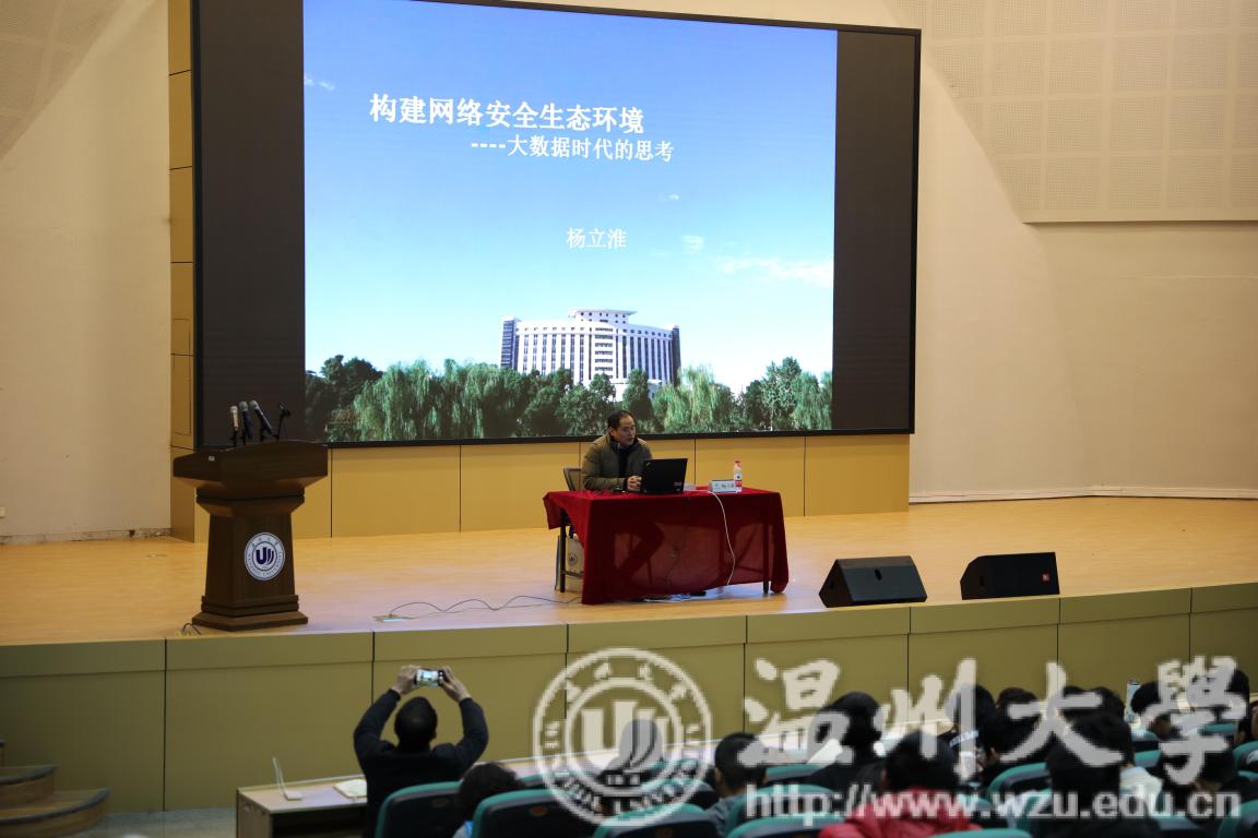 12月11日晚,黑料网 18级全体同学在南校9号楼报告厅聆听了形势与政策课。其中,第二场讲座由教师与教育学院党委书记杨立淮执讲,杨书记向大家讲授了关于构建网络安全生态环境在大数据时代下的思考。