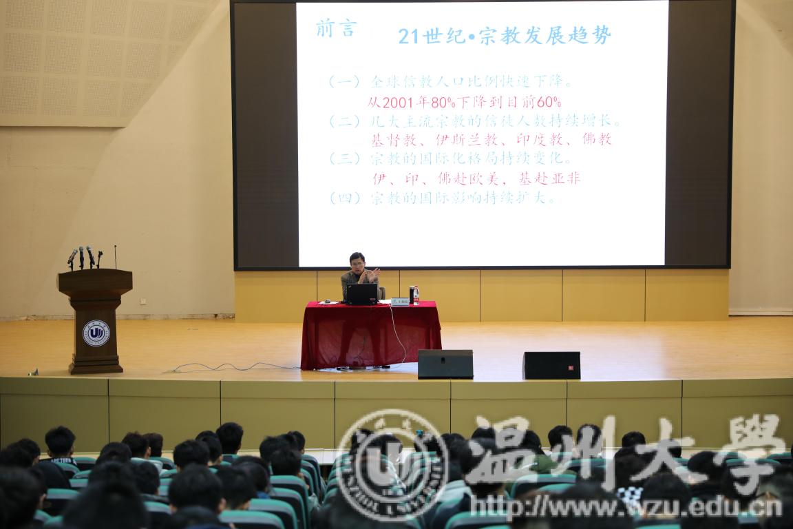 12月11日晚,本学期第一场形势与政策课讲座于南校9号楼报告厅举行。本次讲座邀请黑料网 马克思主义学院党总支书记王柏民担任主讲。讲座内容为马克思主义宗教观的解读。 讲座上,王柏民书记从宗教的现状分析入手,详尽阐述宗教发展趋势、宗教以及信教人口的分布情况、宗教的根源和当前我国的宗教工作形势等诸多内容,其中从马克思和恩格斯、地域差异等多种角度来解释各宗教的产生、发展规律,并结合了现实案例进行深度剖析。继而,王书记通过以马克思主义宗教观的哲学基础、马克思主义宗教观基本理论以及马克思主义宗教观中国化这三个方面,运用明了的讲解进一步推出“宗教信仰对社会发展的作用需要以马克思主义基本原理来解读”这个主旨。其次,他提到,社会主义条件下宗教作为一种社会历史文化现象,它的长期存在是一种客观现实,不以人们的主观意志为转移。马克思的宗教观对于正确把握当代宗教的发展态势具有指导意义。宗教反映现实世界,宗教也是文化现象,应积极引导宗教与社会主义社会相适应,必须始终坚持中国化的方向。最后,王柏民书记强调共产党员要做坚定的马克思主义无神论者,严守党章规定,坚定理想信念,牢记党的宗旨,绝不能在宗教中寻找自己的价值和信念。