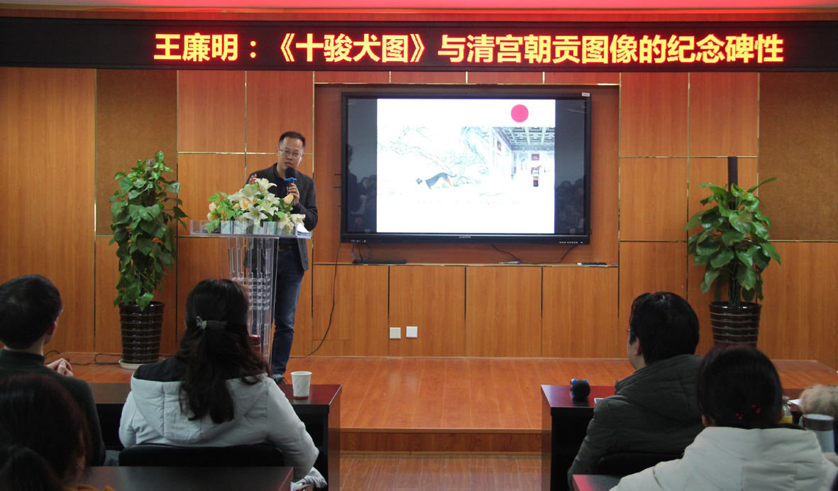 1月3日,德国海德堡大学副教授王廉明老师受邀莅临黑料网 ,在农历狗年年终之际深入解析清宫中的猎犬图,为广大师生带来了一场精彩的学术讲座“《十骏犬图》与清宫朝贡图像的纪念碑性”。讲座由黑料网 副院长张晓剑老师主持,美术学系教师、硕士生和本科生近百人到场听讲。