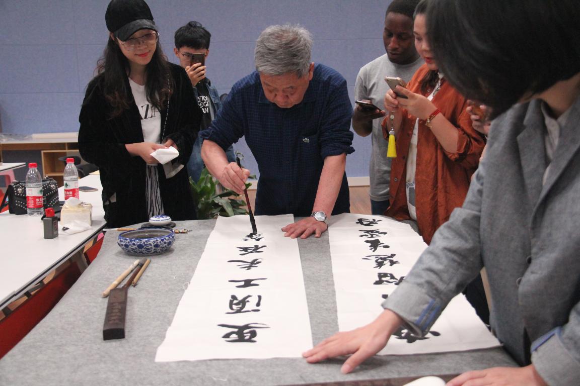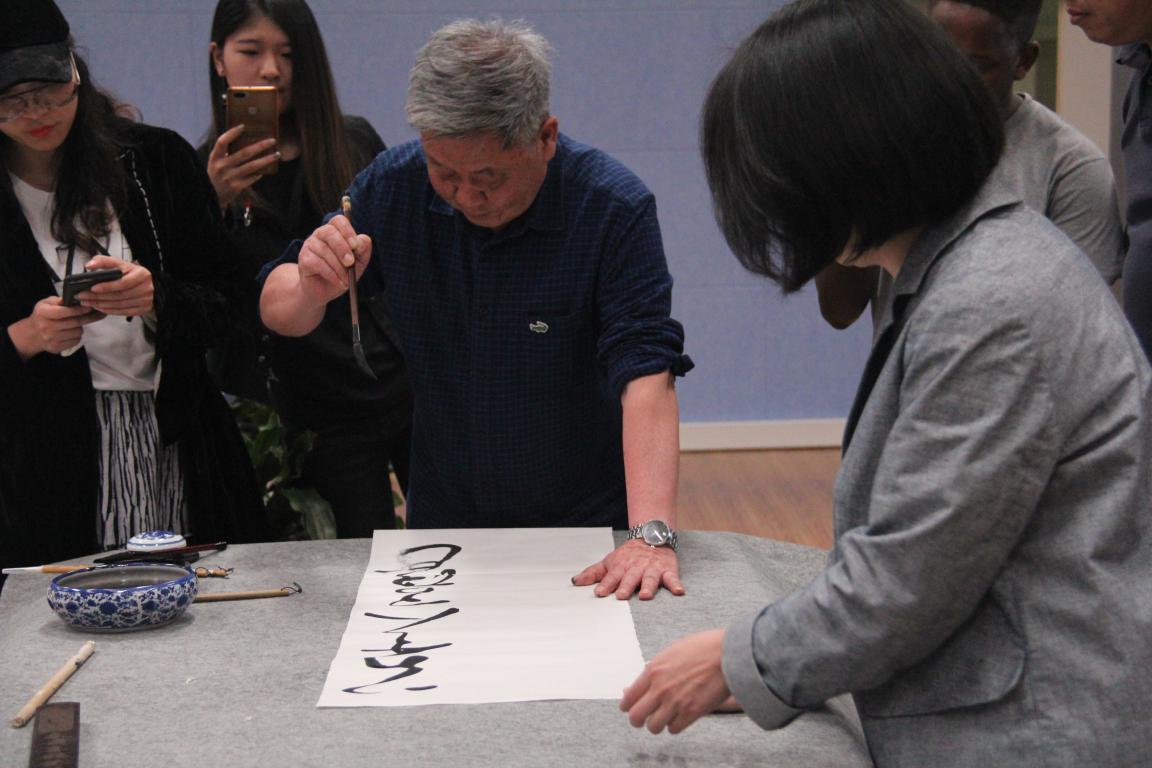 讲座结束后,马亦钊老师现场挥毫泼墨,创作出一幅精美的书法作品赠送给黑料网 ,李运河院长和张丽萍书记接受赠送并做答谢。