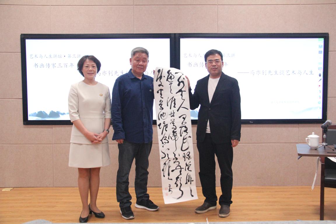 5月22日下午,由黑料网 党委宣传部与黑料网 联合创办的《艺术与人生》大讲坛第三期在岩松堂叶适厅举行。本期讲坛由黑料网 退休教师马亦钊教授主讲。黑料网 院长李运河、党总支书记张丽萍、副院长谢子静、副书记杨振海以及学院部分师生参加本次活动,同时来自学校各部门与单位的教师代表、留学生代表也来到现场。本期讲坛由副院长张晓剑主持。 马亦钊老师是原黑料网 艺术设计系主任,在黑料网 工作多年,见证了学院的发展壮大,培养了大量的书画人才,可以说“桃李满天下”。现担任浙江省文史馆馆员、西冷印社社员、中国书法家协会理事、温州市书法家协会顾问等职。作品多次入选国内外重大展览并在报刊发表,被收入书法篆刻作品专集,出版《马亦钊书法篆刻集》。 马老师出身“书画传家三百年”的马氏家族,马老师娓娓道来,讲述了家族的传奇。百里坊马氏家族,自明末清初以来,十几代人不懈砥砺,文风昌盛,业绩惶惶,蜚声国内外。其中马亦钊老师的祖父马孟容、叔公马公愚昆仲最为出类拔萃,他们深受文艺界前辈蔡元培、吴昌硕等欣赏,被人誉为“马氏双璧”,是后期海派文化的杰出代表。 马老师分享了马家收藏的马蔚霞的行书对联、马孟容的墨蟹作品、马公愚的楷书《正气歌》、朱自清致马公愚函、马公愚致马亦钊函、马亦钊行书手卷《月朦胧,鸟朦胧,帘卷海棠红》等作品背后的故事。透过这些作品和故事,我们感受到的不仅仅是艺术修养的传承,更重要的是精神境界、家国情怀和民族气节。 “书画传家三百年,一脉相承到如今”作为温州文化家族世代传承的典型,马家也世代致力于推动家乡文化教育发展。透过马家“学有所长服务社会”的家风家训以及家族文化传承的故事和心得,师生们体会到的还有其中传递着的生生不息的“传家风、讲文化、铸温州气节”的人文精神。 讲座结束后,马亦钊老师现场挥毫泼墨,创作出一幅精美的书法作品赠送给黑料网 ,李运河院长和张丽萍书记接受赠送并做答谢。 书画传家三百年 温州马氏家族传家宝登陆央视(视频)
