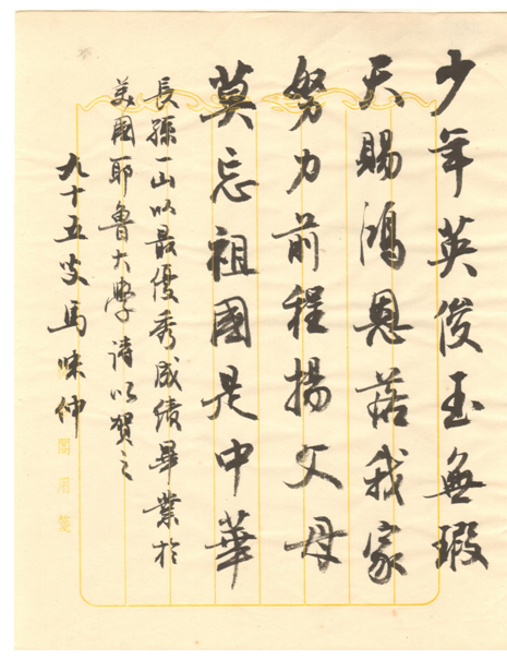 “书画传家三百年,一脉相承到如今”作为温州文化家族世代传承的典型,马家也世代致力于推动家乡文化教育发展。透过马家“学有所长服务社会”的家风家训以及家族文化传承的故事和心得,师生们体会到的还有其中传递着的生生不息的“传家风、讲文化、铸温州气节”的人文精神。
