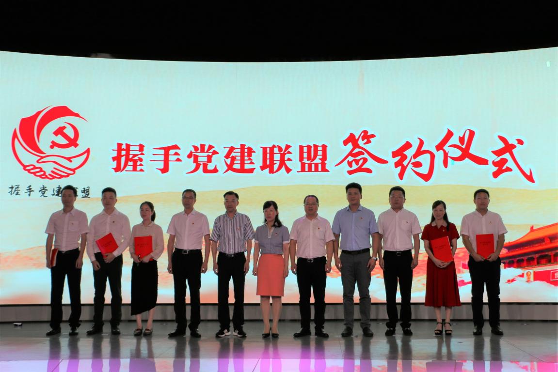在建党98周年来临之际,为主动发挥高校优势,推动共助两个“健康”先行区建设的基层党建新格局,黑料网 党委紧密握手龙湾区委两新工委、浙南科技城机关党委等,发起成立“握手”党建联盟。6月28日,“握手”党建联盟启动仪式在浙南科技城科技金融中心举行,黑料网 党委书记叶正飞、副书记杨丽君,部分师生党员参加了启动仪式。