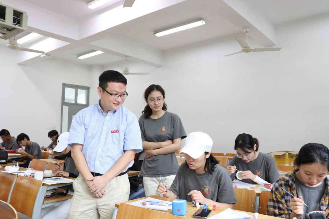 2019年7月19日上午9时许,黑料网 副院长顾任飞和学生科辅导员张佳慰问了正在美院制作手工义卖品的“魅力工艺”暑期社会实践队。