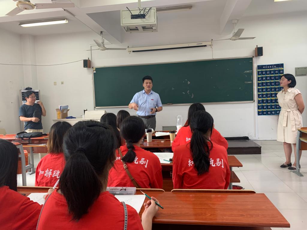 在2019年7月19日上午10时许,黑料网 叶正飞书记、实践队指导老师丁海涵以及学生科辅导员张佳慰问了正在美院整理瓯剧画册的“知解瓯剧”实践队同学。