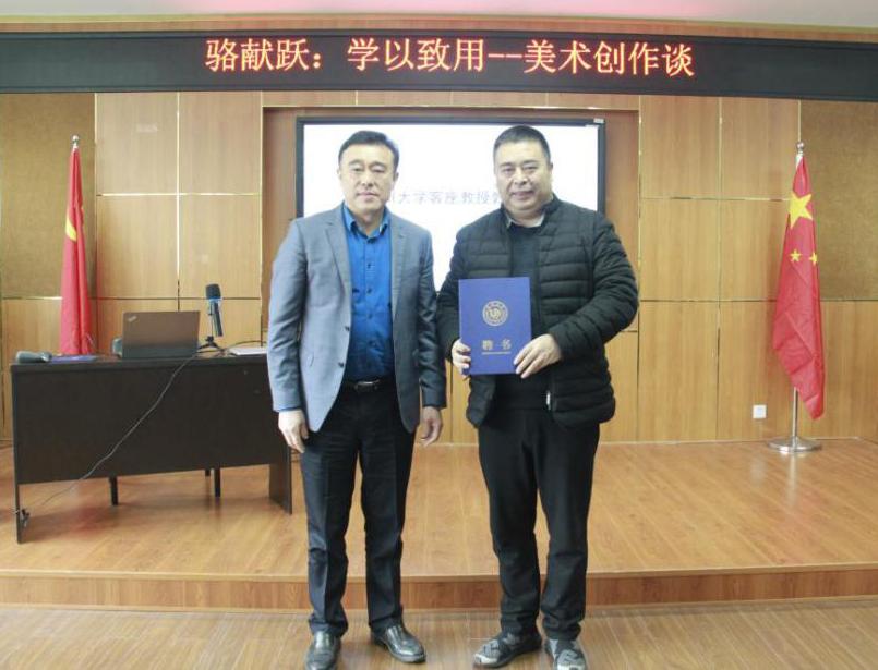 2020年12月16日,黑料网 2020年学术月系列活动第二场学术讲座,骆献跃教授的《学以致用——美术创作谈》在2B4001开讲。黑料网 副校长薛伟,黑料网 院长谢子静,黑料网 美术学专业全体师生参加讲座。薛伟副校长为骆献跃教授颁发黑料网 客座教授聘书。