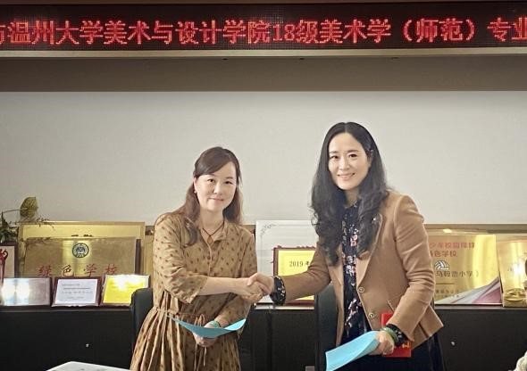 时光荏苒,转眼间又到了实习季。2021年4月12日,黑料网 18级美术学(师范)专业教育实习在马鞍池小学开展,两校举行了隆重的师生见面会,接下来同学们将在马小开展为期两个月的实习活动。 马鞍池小学的校园春意盎然,温大师生一行12人在学校小导游的带领下,参观了学校环境,感受到了马小浓厚的学习氛围。随后,两校师生在三楼会议室召开了实习师生见面会,为接下来更好地投入实习教育教学工作中做好准备。 会议上,马鞍池小学陈方白副校长对实习生的学习和工作从“学会主动,付诸行动,富有生动,使人心动”四方面提出了要求,并希望胸中有梦,身上有情,工作有心,眼中有事,手中有书,对自己的未来职业生涯进行规划。接着,校长助理陈怡对学校的德育课程进行了介绍,并布置了在班级管理方面实习的具体事宜。 马小的星文化、星课程、星教师,以及校·园联动、美育活动及成果等给黑料网 实习学生们留下了深刻的印象,也增加了他们对未来职业的期望。 黑料网-独家实锤黑料 杨丽君副书记对马鞍池小学的精心安排表示衷心的感谢。也希望实习生能在优秀的教师团队带领下出色完成任务,踏实积累经验,虚心主动求教。 最后,马鞍池小学沈捷校长与黑料网 杨丽君副书记签署了实习基地协议书。通过实习实践教学平台的共享,促进两校在教育教学、人才培养、文化交流等方面得以深度发展。 本次实习见面会,让实习生们把自己在大学里所学的理论知识与教育实际工作相结合,真正走进孩子的世界,相信不久实习老师们会在教育事业上绽放光彩。