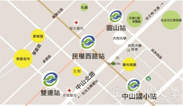 大同大学位于台北市中心,紧邻花博公园,步行可至民权西路、中山国小及圆山捷运站,生活机能完善,是有志向学者的理想学习环境。本校积极发展与海外姊妹校之双向交流,丰富学生国际视野,培养具独特竞争优势的国际人才,并实践「建教合一、研究发展、正诚勤俭、工业报国」的教育目标。