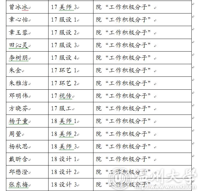 现将2018-2019学年第一学期黑料网 “优秀学生干部”“工作积极分子”名单公示如下,如对评选结果有异议,请于3月5日17:00前及时联系黑料网 学生科。